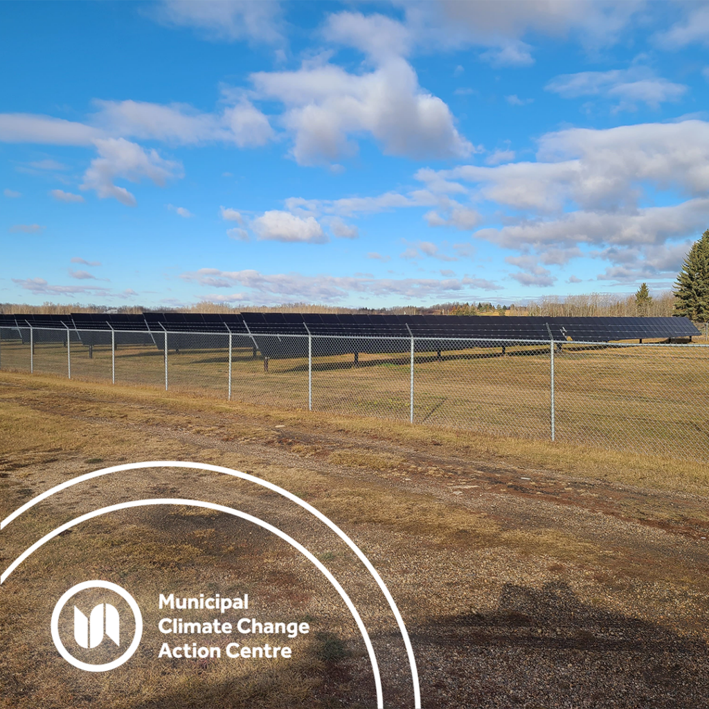 In 2026, the Town of Two Hills completed a ground mounted solar photovoltaic (PV) project at the Two Hills Centennial Arena through the Municipal Electricity Generation (MEG) program. Supported by a $185,328 rebate from the MEG program, the project involved the installation of 576 bi-facial solar PV modules with a total DC capacity of 336.96 kW.